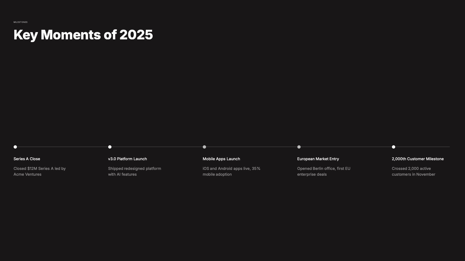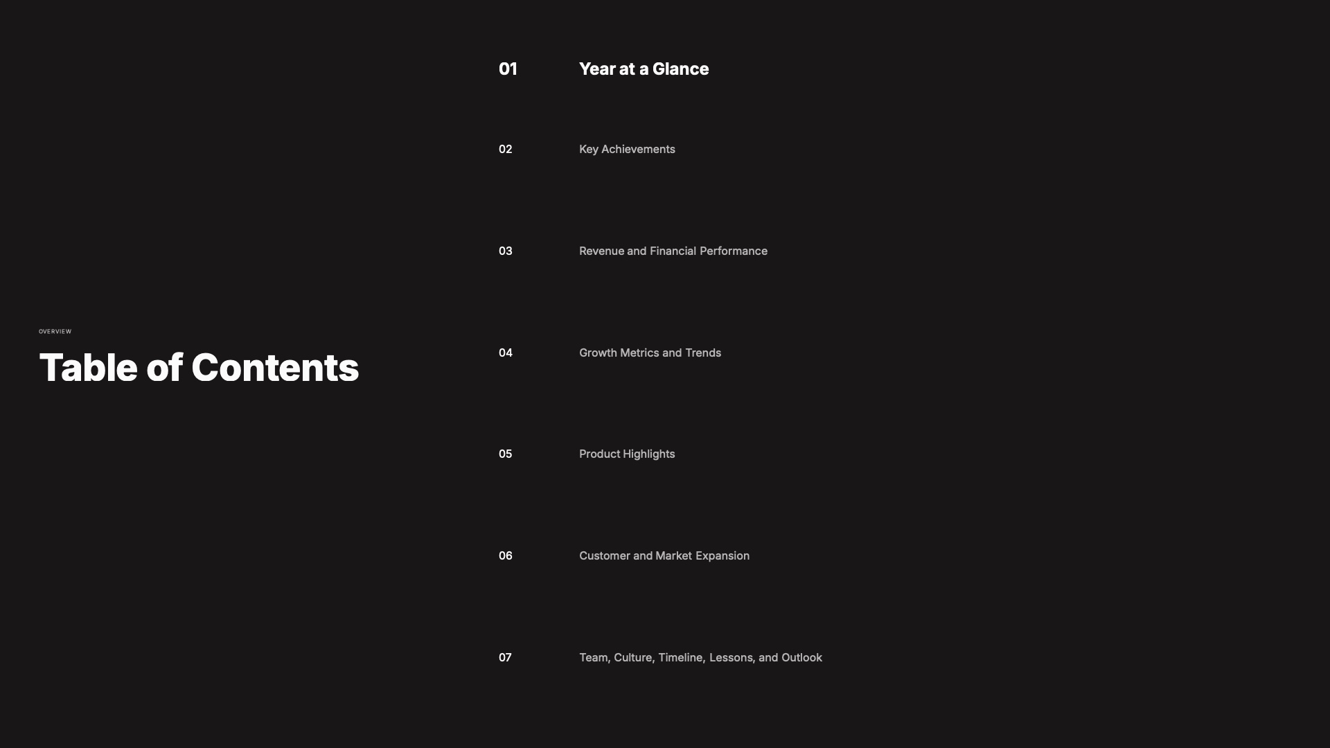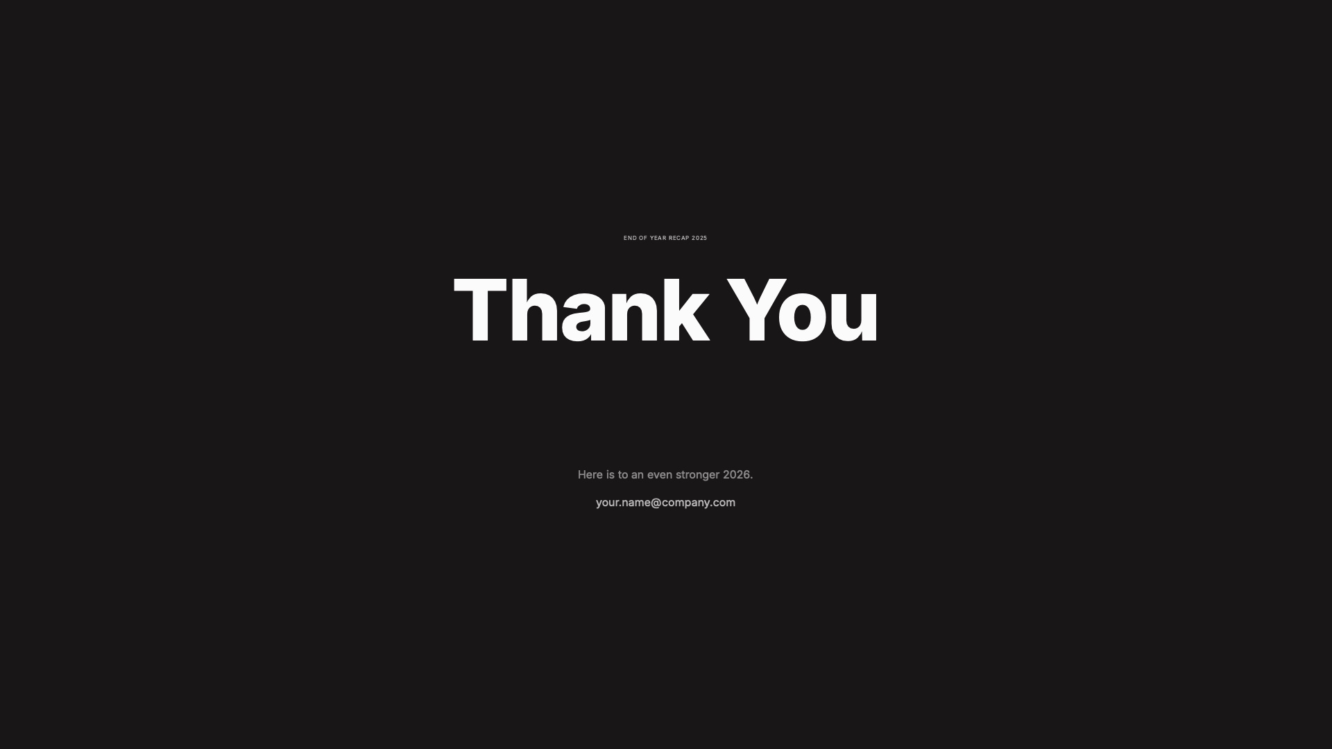 A comprehensive end-of-year recap presentation template with financial charts, growth metrics, timelines, and strategic outlook pages to communicate your annual performance with clarity.About
