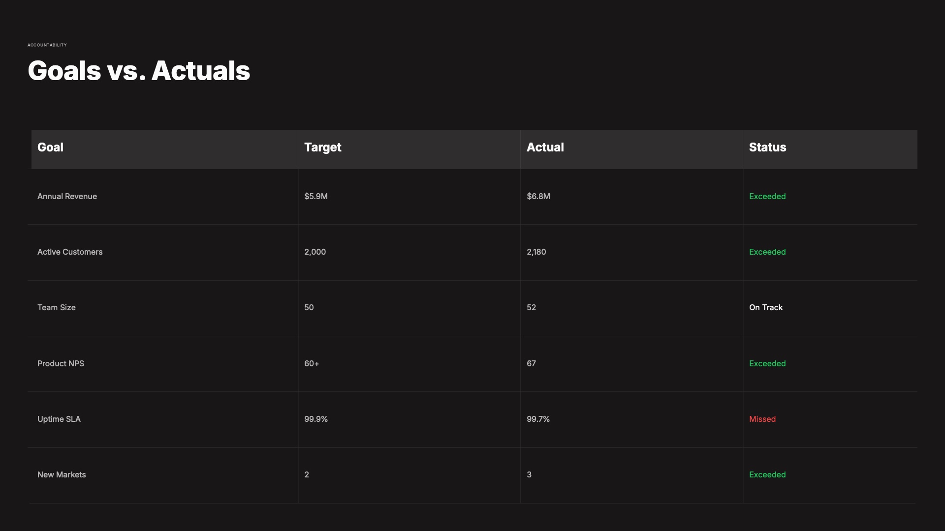 12Goals vs. Actuals