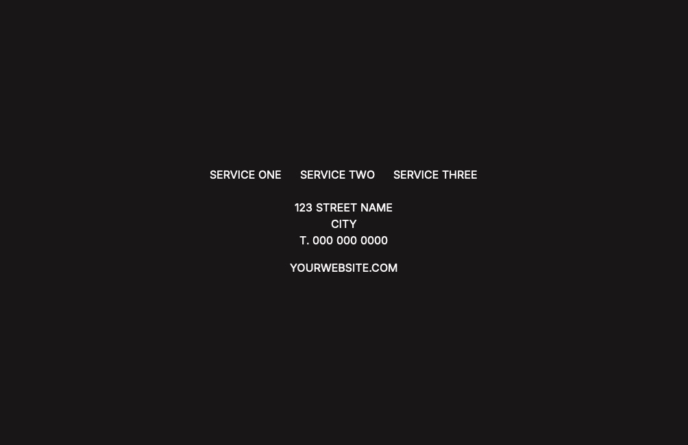 A refined, minimal business card that puts your brand front and center. The front features your name or logo in clean, centered typography. The back organizes your key details — services, address, phone, and website — in a balanced, typographic layout. Swap in your own colors and fonts to make it yours.