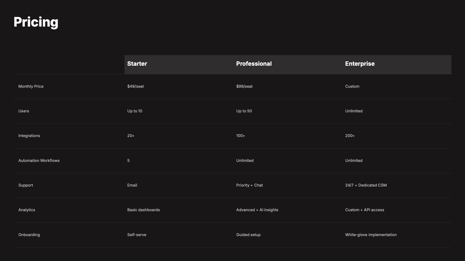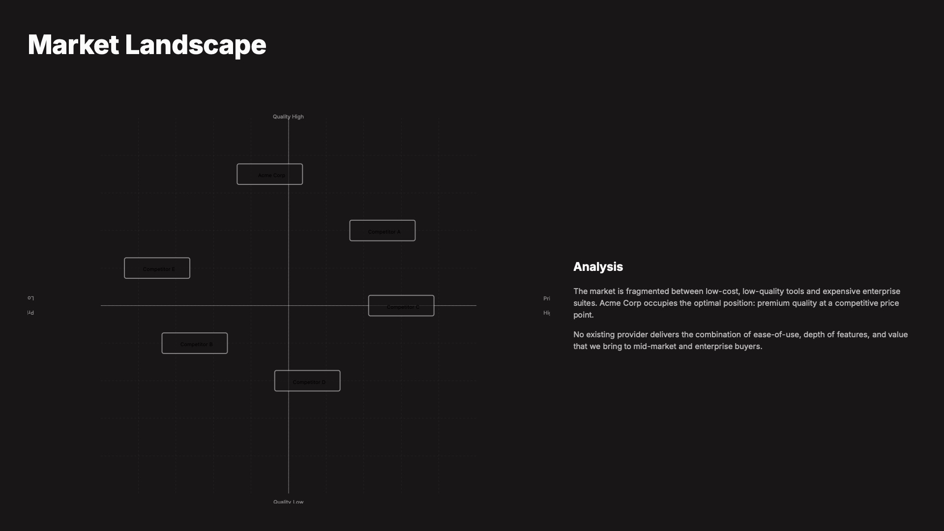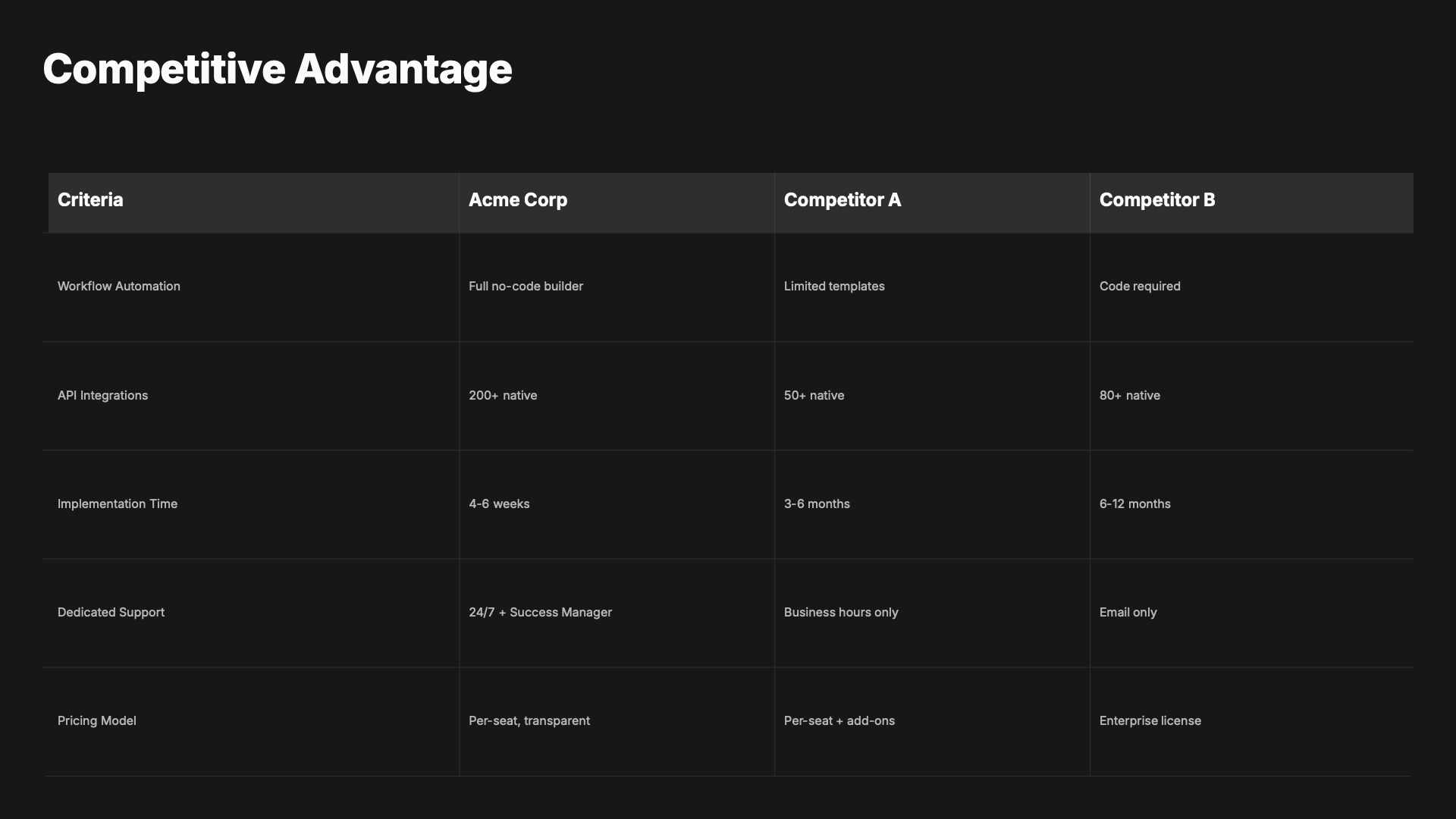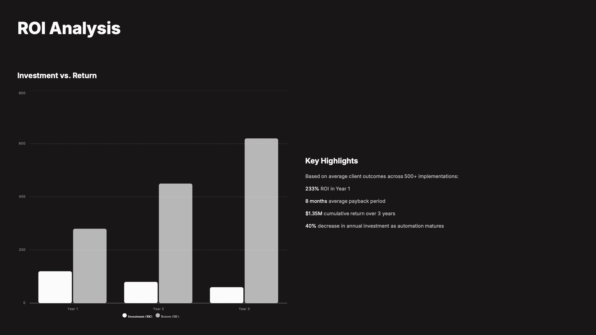 A 20-page sales proposal presentation with competitive analysis, pricing tables, ROI charts, and implementation timelines to close deals with confidence.About