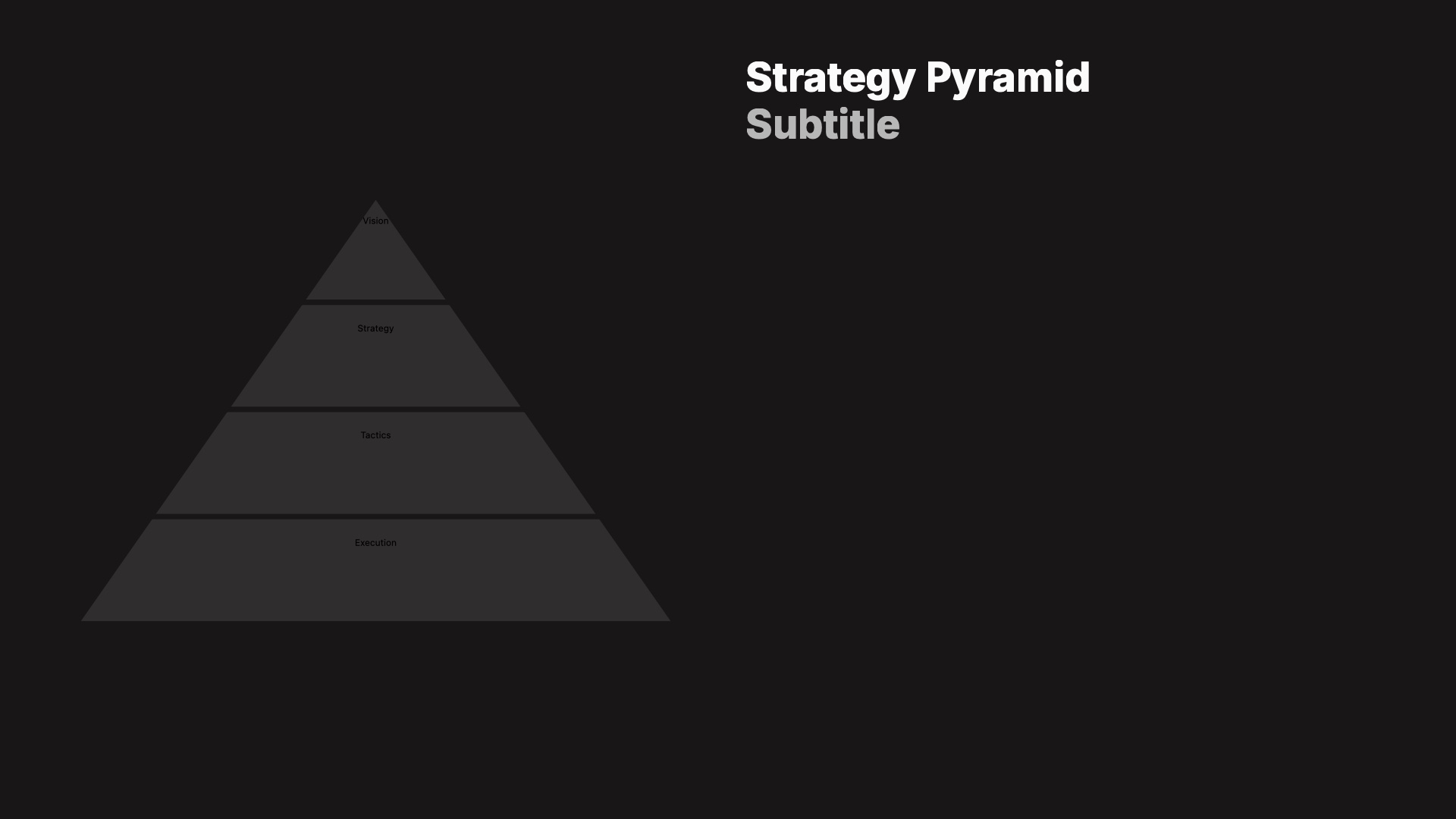 A strategy presentation template built around visual frameworks — pyramids, funnels, and diagrams — to communicate your strategic vision with clarity and impact.About